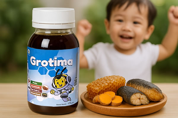 Grotima, sebagai vitamin herbal anak berbahan dasar madu, temulawak, ikan gabus, dan gamat emas, merupakan solusi alami yang mendukung berbagai aspek tumbuh kembang anak: dari peningkatan nafsu makan, kecerdasan, daya tahan tubuh hingga kualitas tidur.